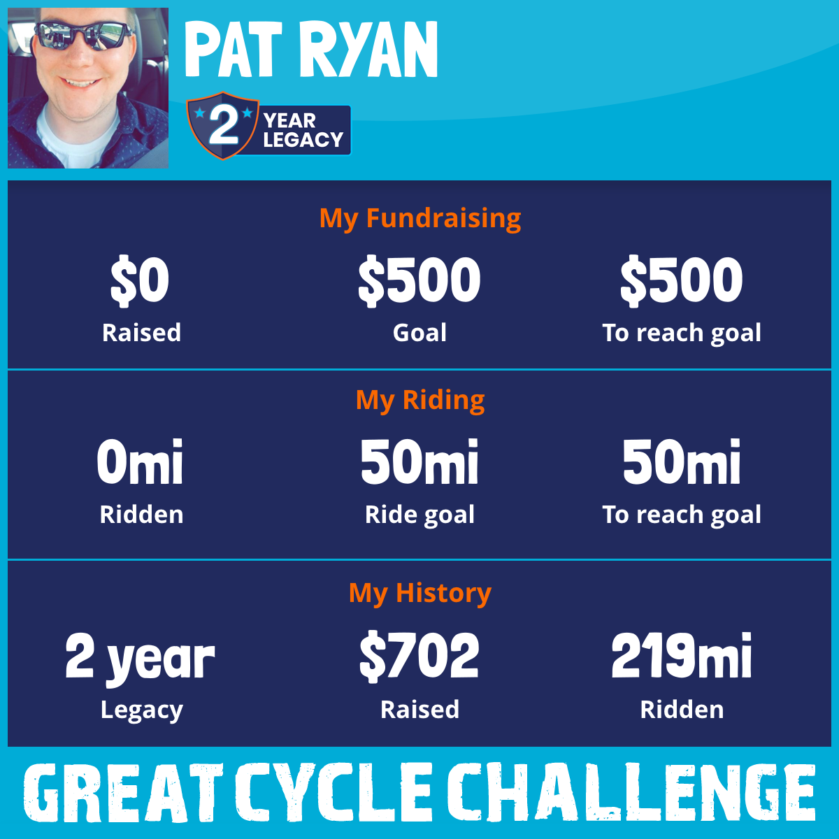 I am riding 50 mi in memory of Bob Ryan. Please sponsor me and support my challenge to fight kids' cancer and save little lives.