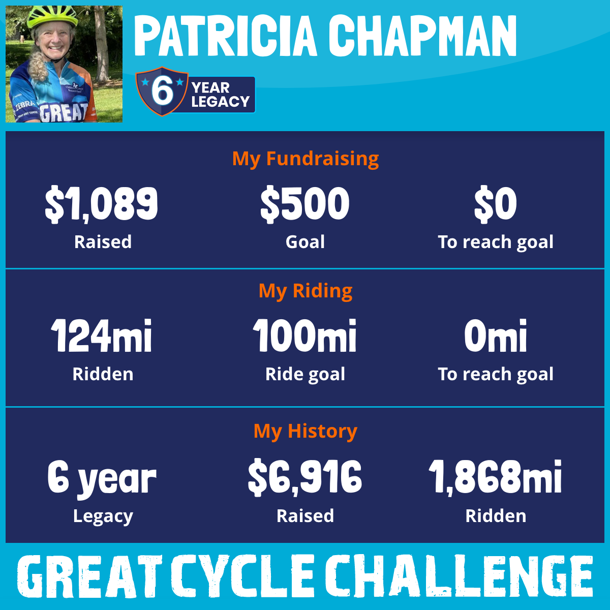 124 mi Ridden$1,089 Raised2025
