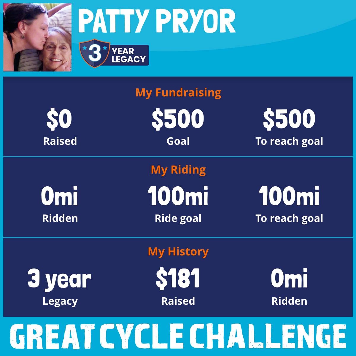 This June, I am taking part in the Great Cycle Challenge to fight kids' cancer! I am riding in honor of my mother, Pat Pryor.