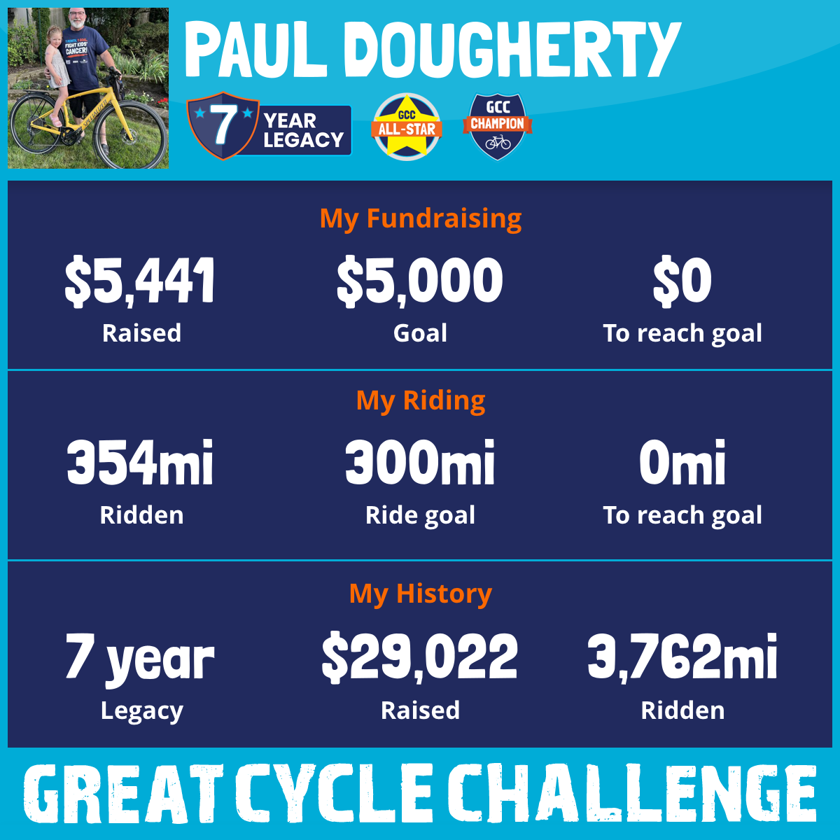 I will be riding in The Great Cycle Challenge in honor of 6 year old Stella Waltemire. Stella was diagnosed with standard risk B cell ALL (acute lymphocytic leukemia) on 3/1/2021! Doctors thought that she had beat cancer but it returned in December of 2023, just a few days before Christmas. Stella had a bone marrow transplant from her 6 year old brother last April. I am happy to report that even though it was touch and go for a while last year - Stella is thriving now! We have a lot more work to do! I am asking if anyone out there can help by donating to the Childhood Cancer Research Fund! Thanks to all that have helped me the past 6 years! God Bless! Your donations fund cancer research and helps develop new childhood cancer treatments with less toxic drugs to fight this rotten disease! We will do anything in our power to help bring that change to fruition. I am here to do my part to raise money for childhood cancer research and I hope my friends and family will do their part by donating to this cause! My dream is that we can find a cure for Stella's cancer and all the other children fighting cancer! Thank You!