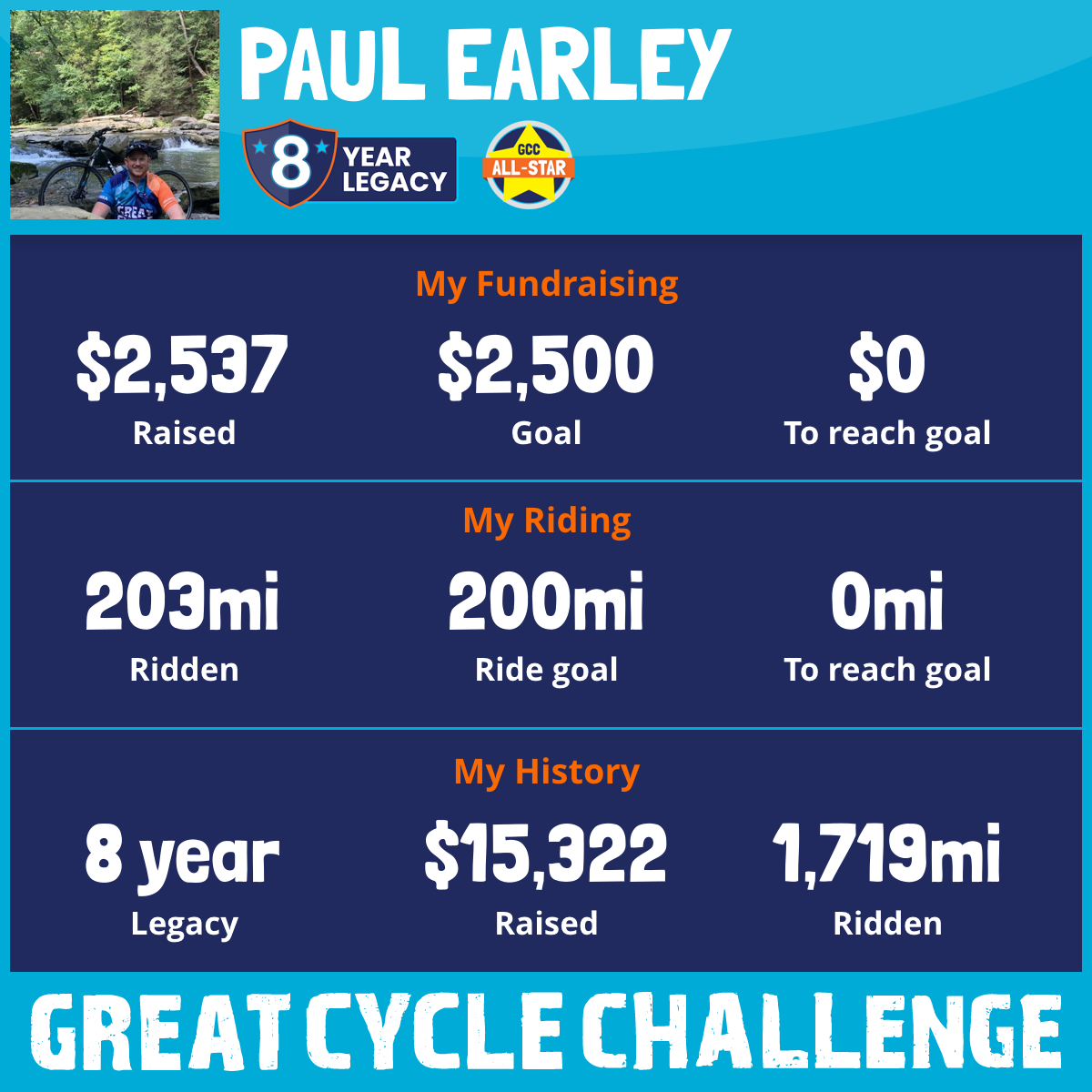 203 mi Ridden$2,537 Raised2025