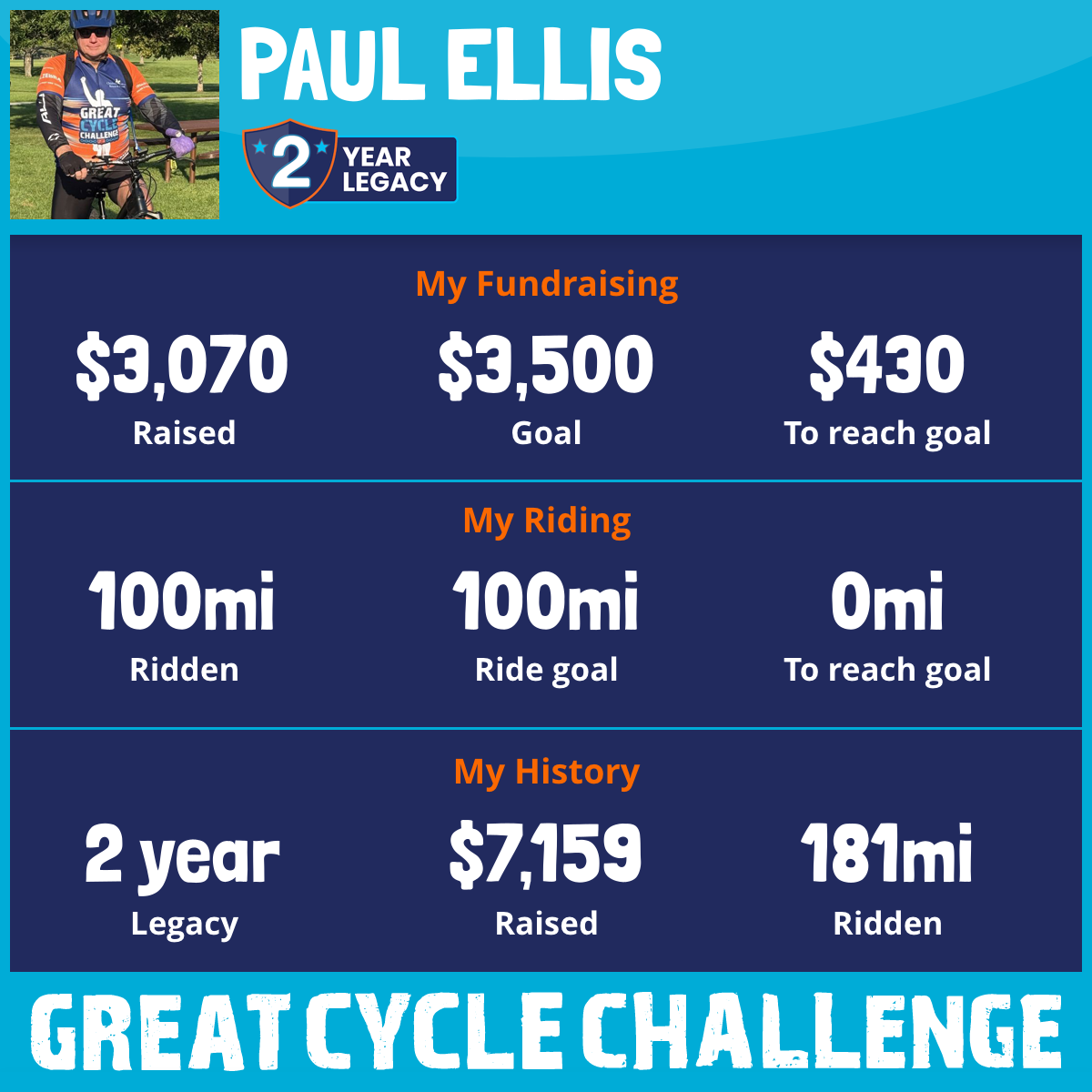 100 mi Ridden$3,070 Raised2025