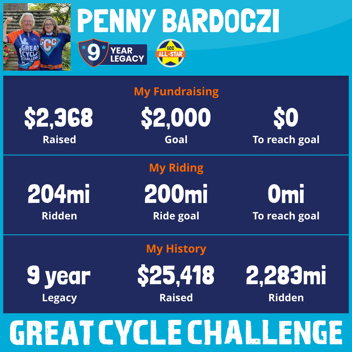 This September I will be taking part in the Great Cycle Challenge to fight kids' cancer! This is my 9th year.