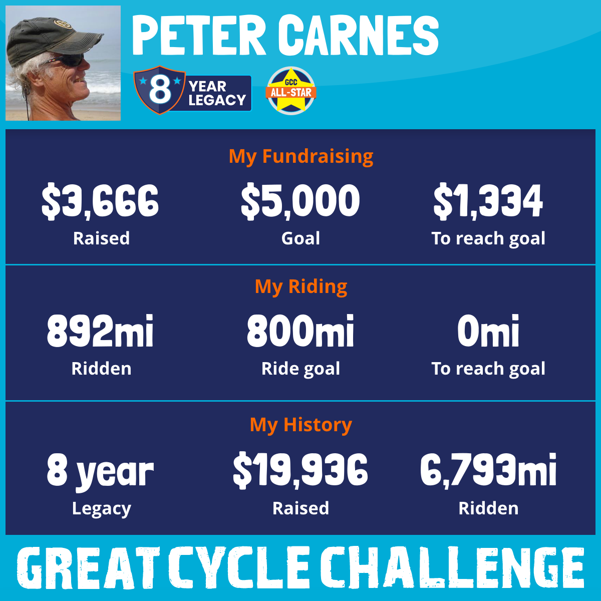 I am riding 800 mi in memory of my friend, Ken. Please sponsor me and support my challenge to fight kids' cancer and save little lives.