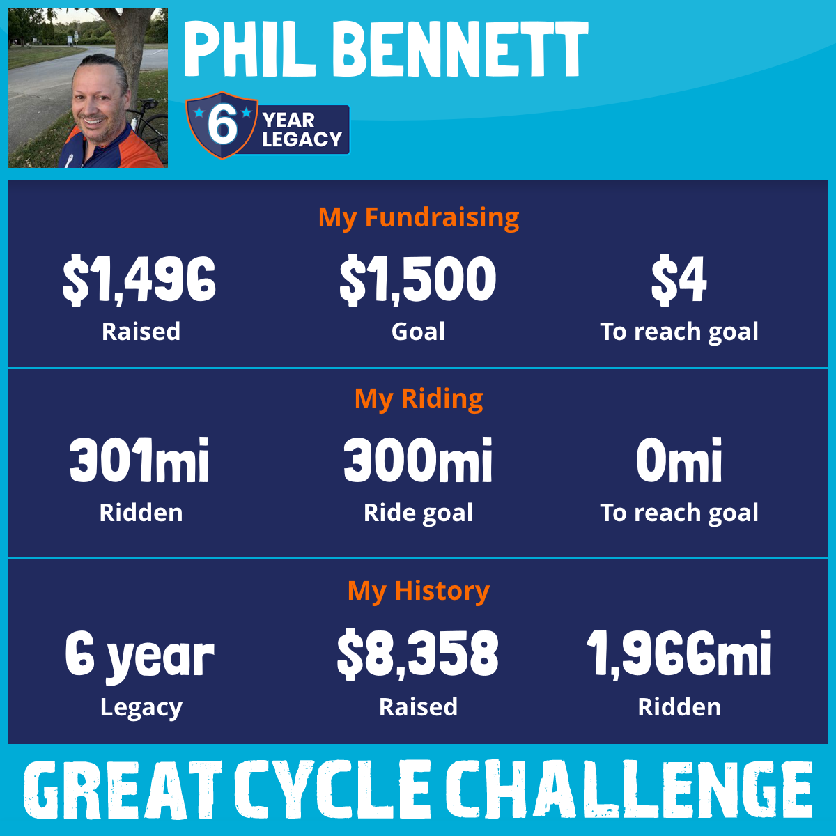 301 mi Ridden$1,501 Raised2025