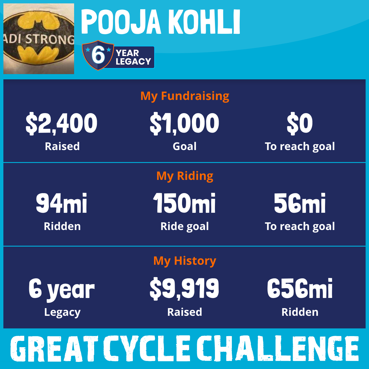 94 mi Ridden$2,400 Raised2025