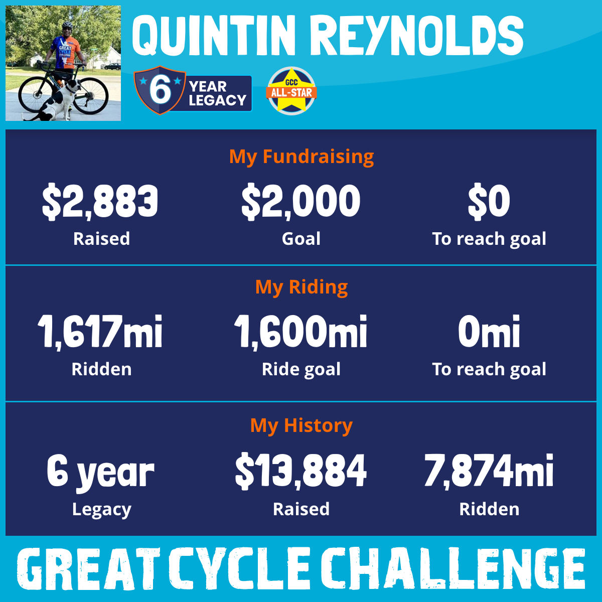 This September, I am riding in the Great Cycle Challenge to fight kids' cancer. My goal is to pedal 1600 miles... and my challenge starts This September.