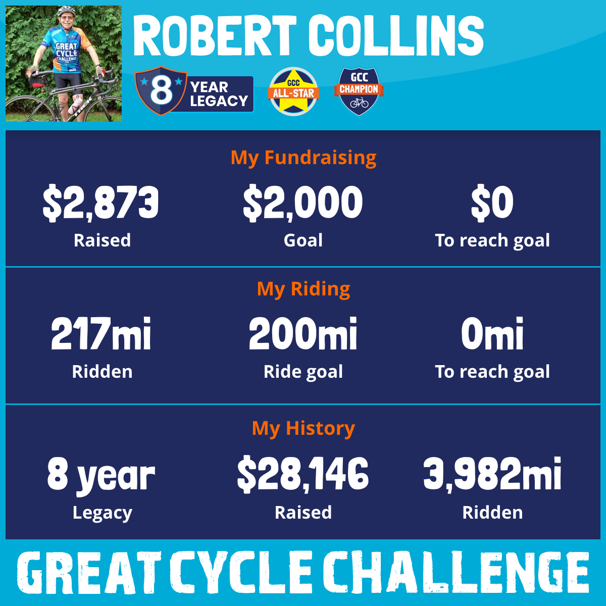 My family and I are celebrating this milestone, and I feel incredibly fortunate to still be riding in my 83rd year for such a critical cause.