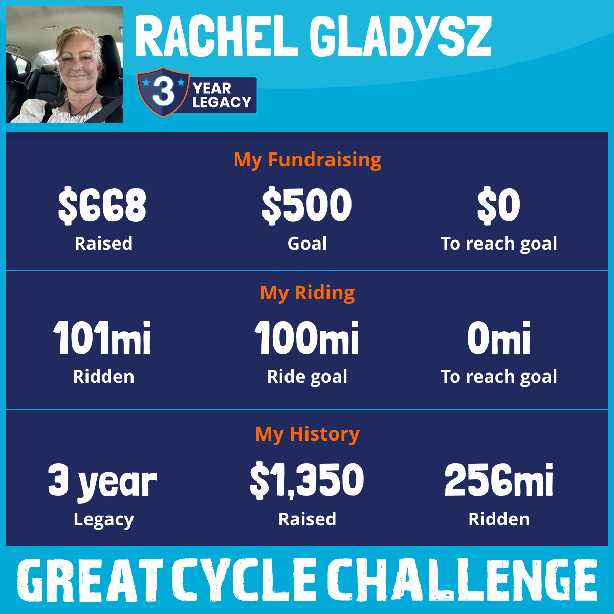 50 mi Ridden$288 Raised2023