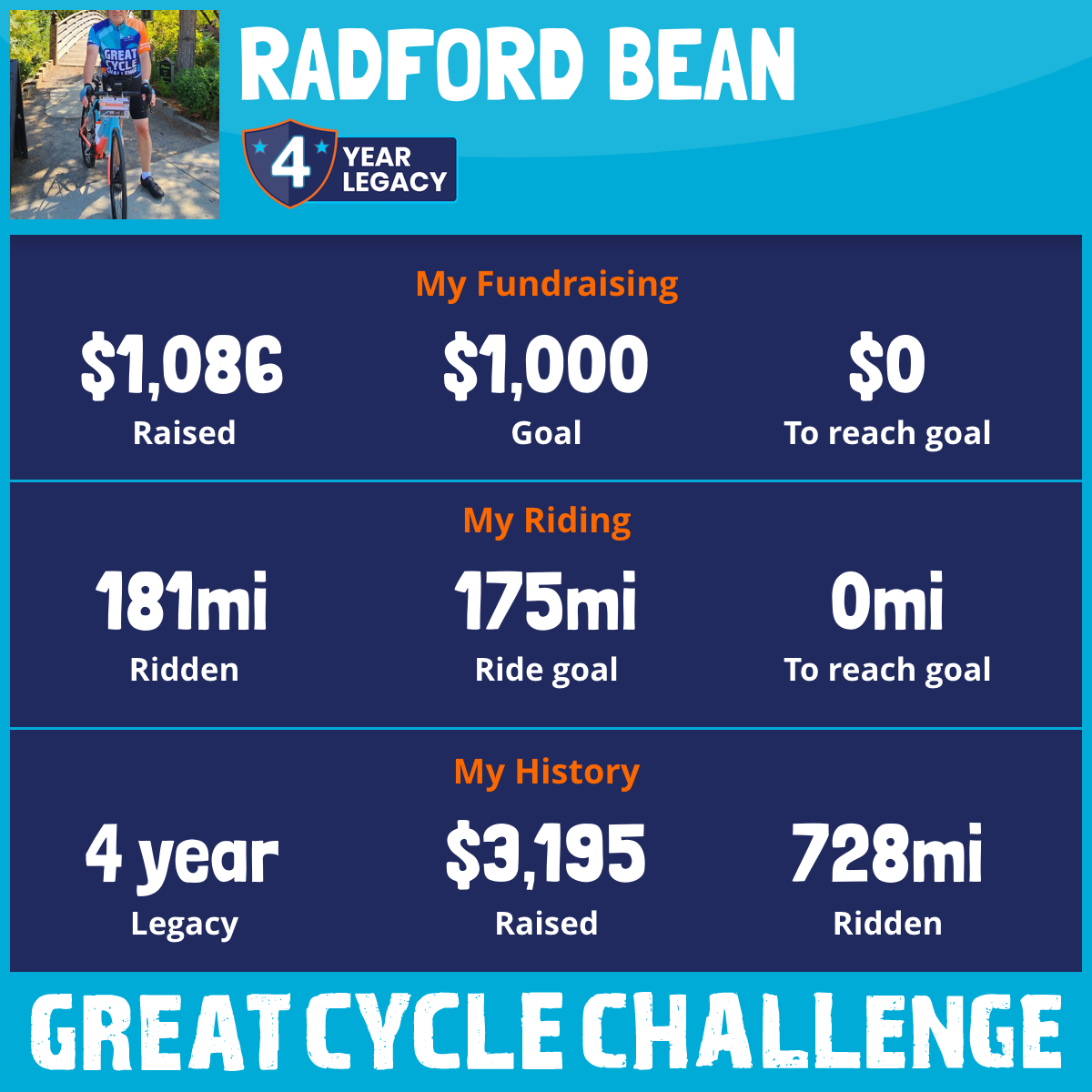 181 mi Ridden$1,086 Raised2025