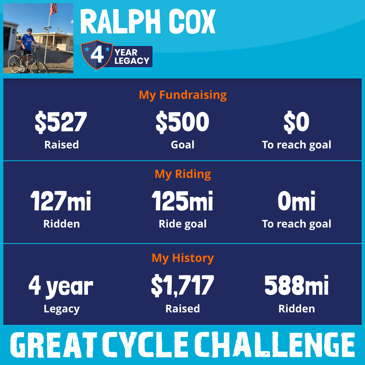 I am riding 125 mi in memory of Diane Cox my mother who died from this evil deasease. Please sponsor me and support my challenge to fight kids' cancer and save little lives.