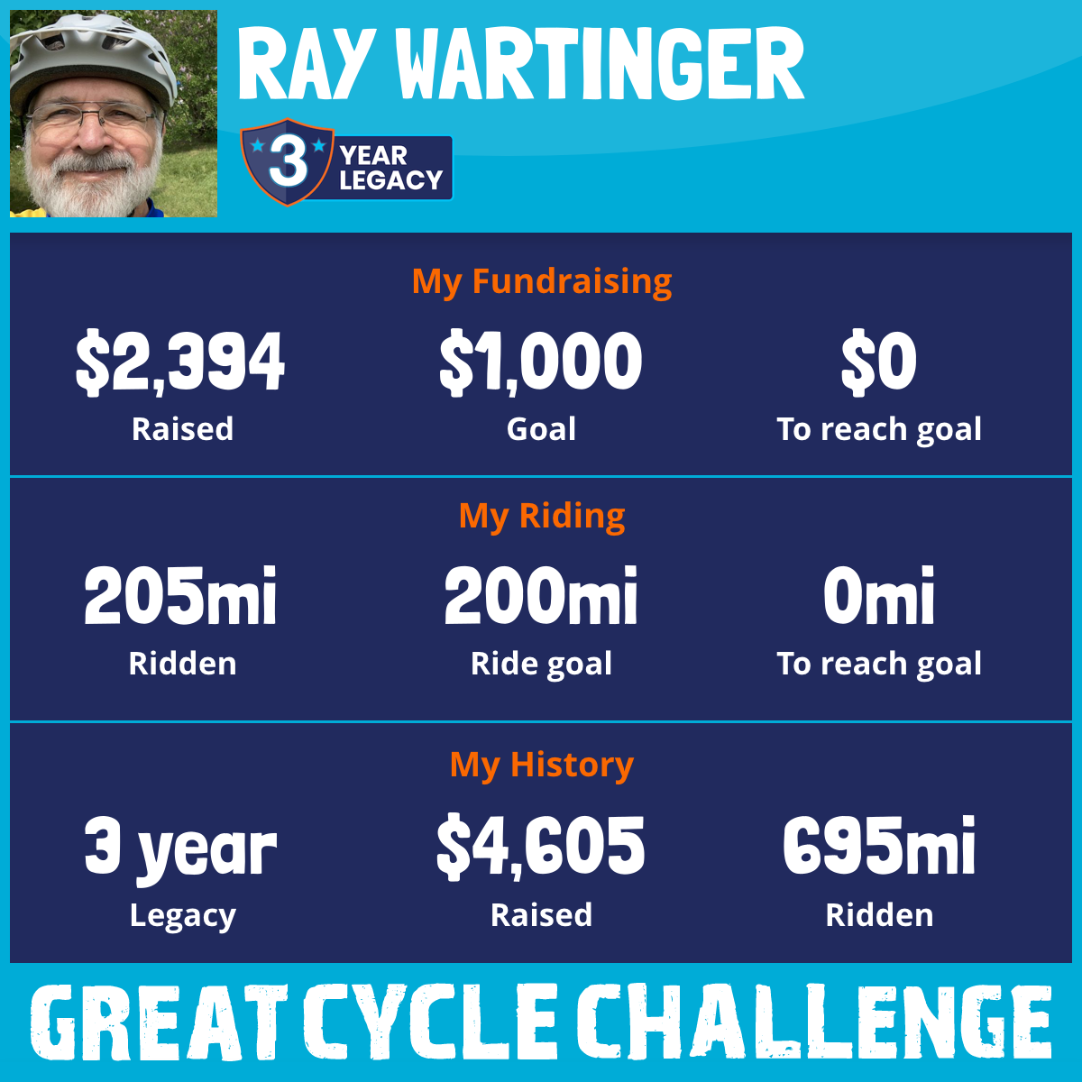 205 mi Ridden$2,394 Raised2025