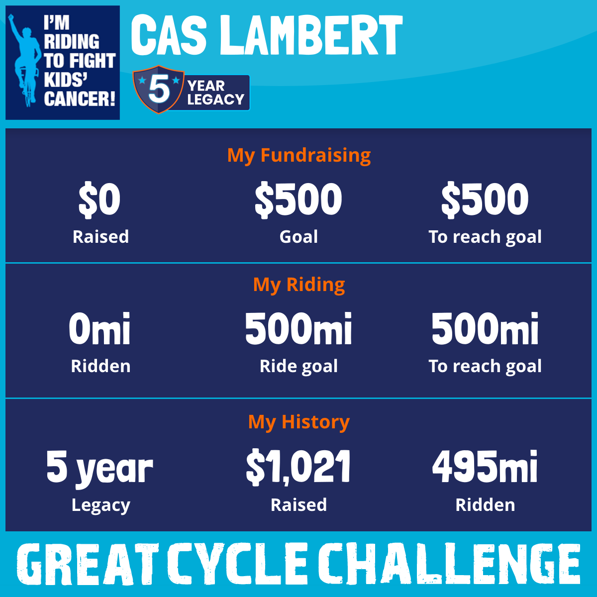 I am riding 500 mi to fight kids' cancer and save little lives. Please sponsor me to support my challenge!