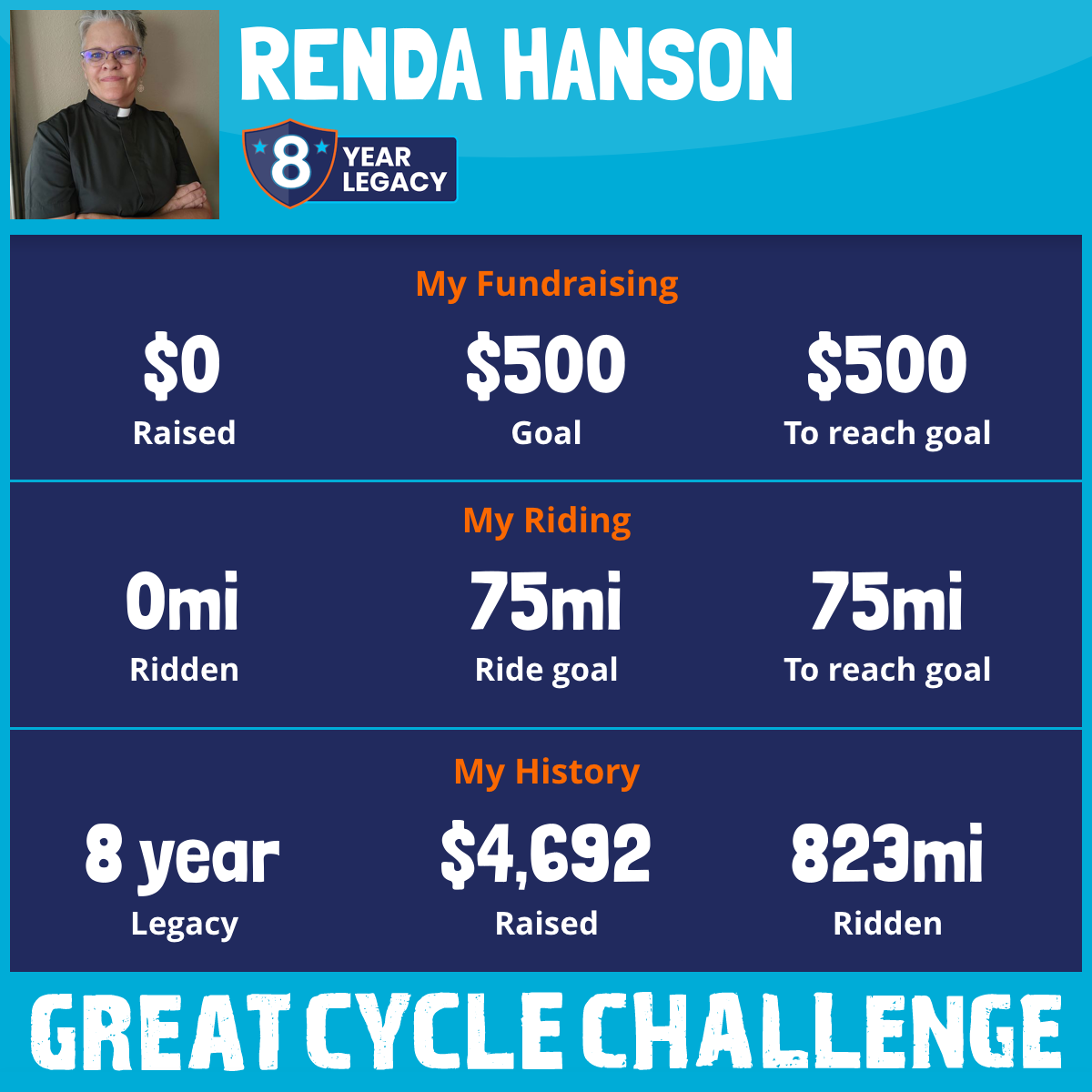 My goal is $700...A $100 for each year I've been taking part in the Great Cycle Challenge to fight kids' cancer!