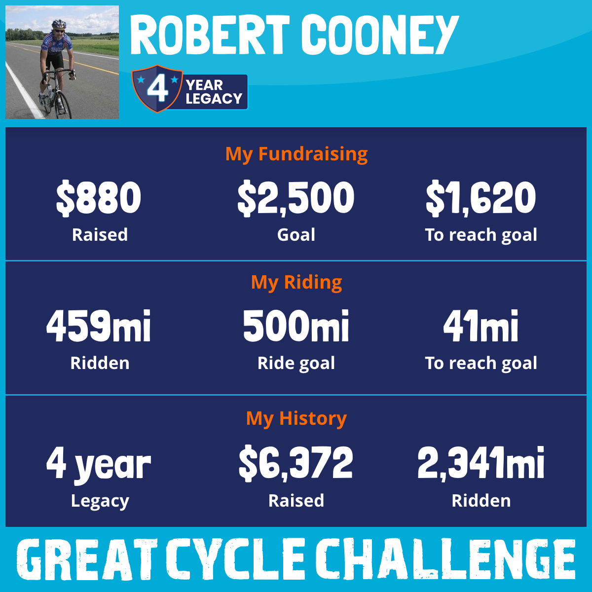 I am riding 500 mi for Logan Cooney. Please sponsor me and support my challenge to fight kids' cancer and save little lives.