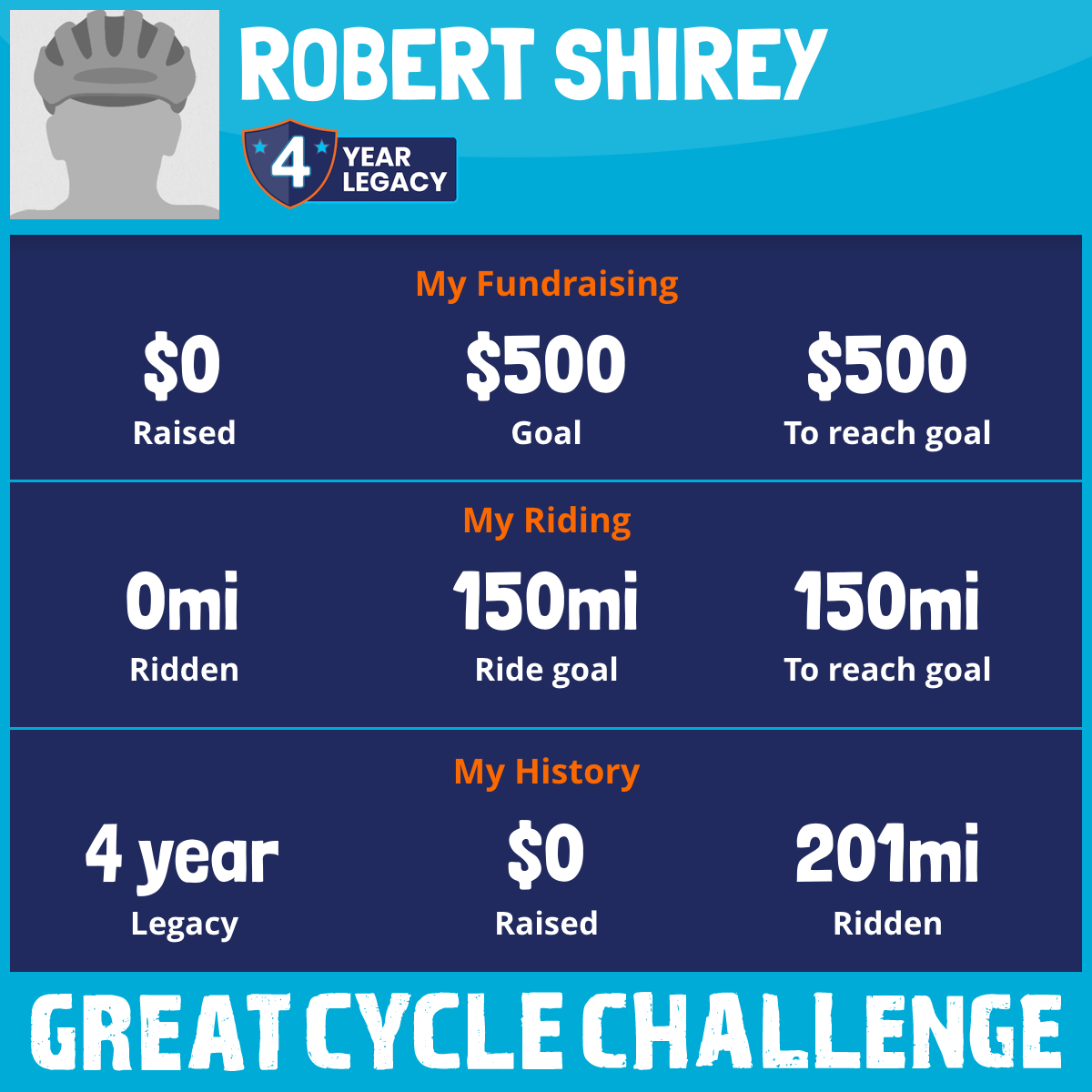I am riding 150 mi in memory of Clayton. Please sponsor me and support my challenge to fight kids' cancer and save little lives.