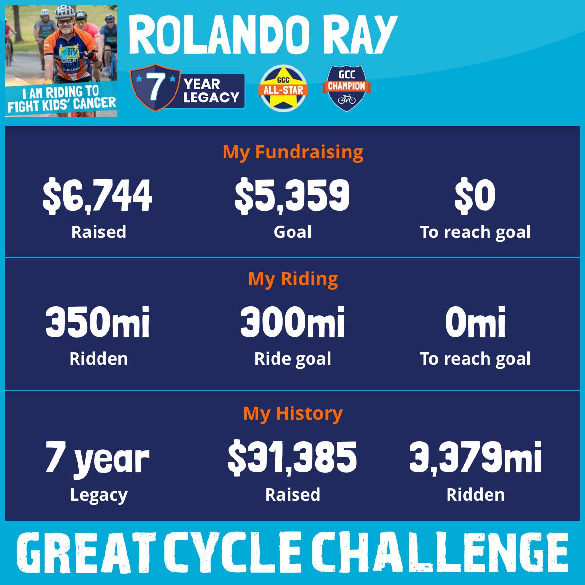350 mi Ridden$6,900 Raised2025