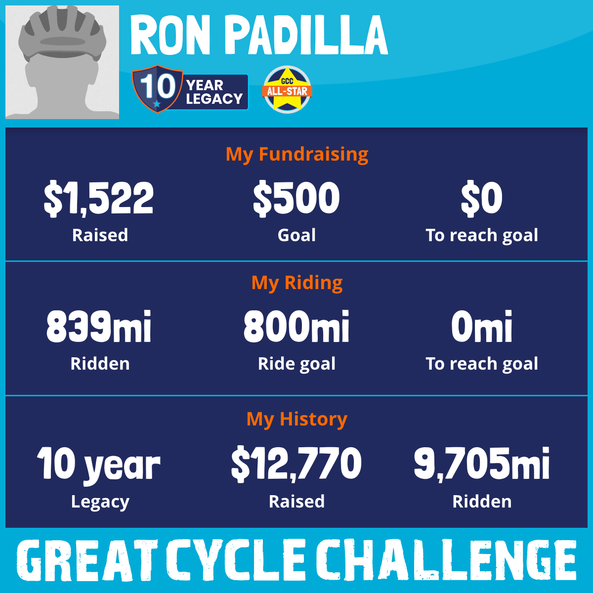 I am riding 800 mi to fight kids' cancer and save little lives. Please sponsor me to support my challenge!