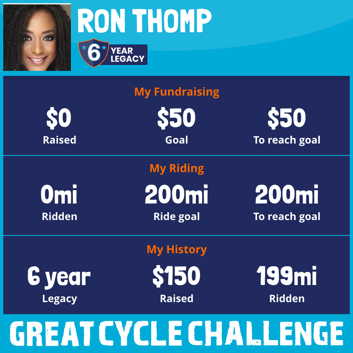 I am riding 200 mi for Every broken spirit. Please sponsor me and support my challenge to fight kids' cancer and save little lives.