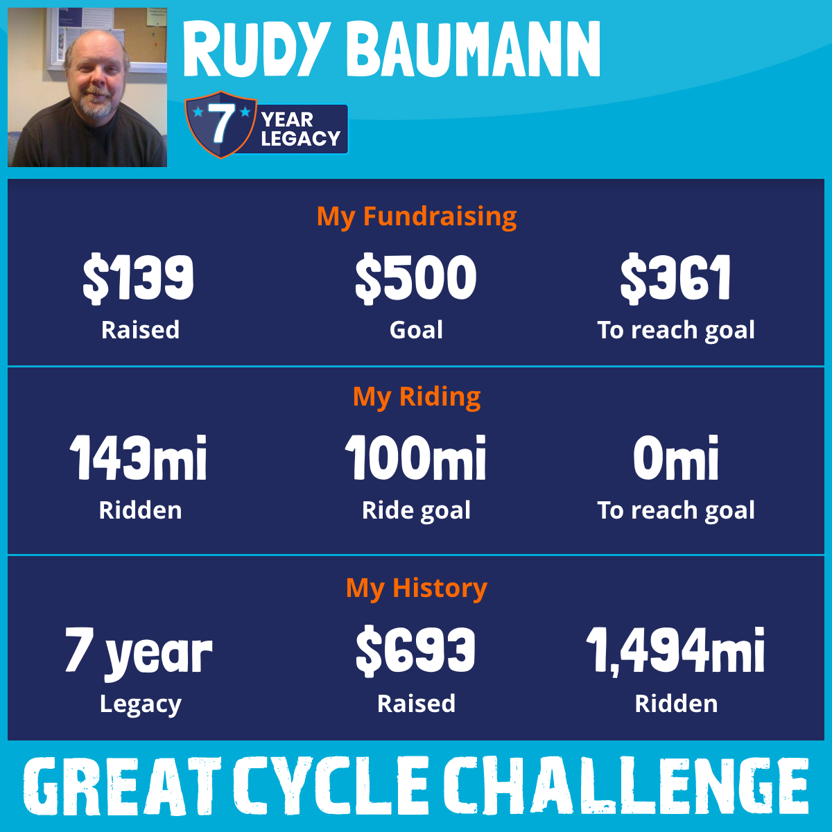 I am riding 100 mi for my friend, Mike S. Please sponsor me and support my challenge to fight kids' cancer and save little lives.