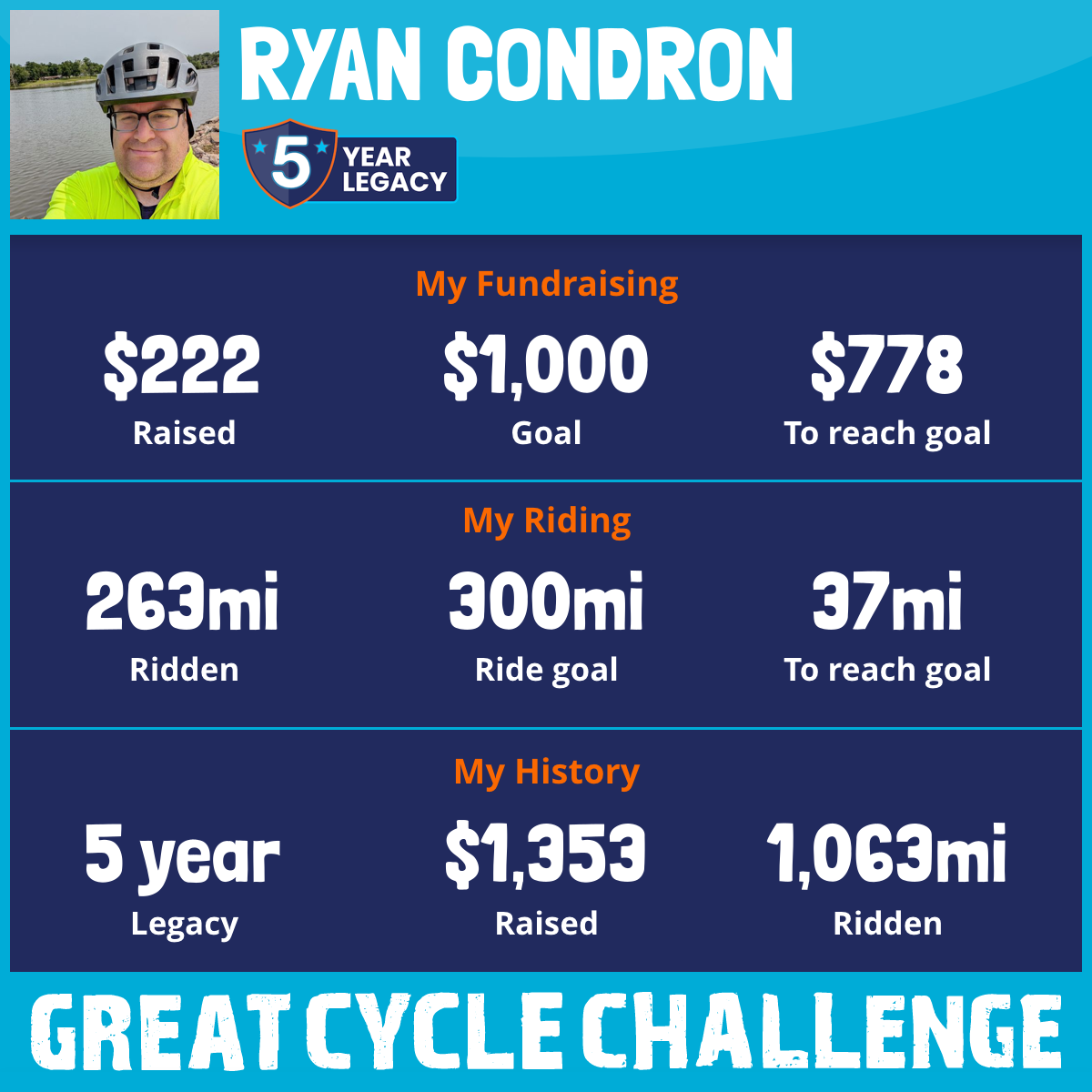 I am riding 300 mi for Those we lost too soon.. Please sponsor me and support my challenge to fight kids' cancer and save little lives.