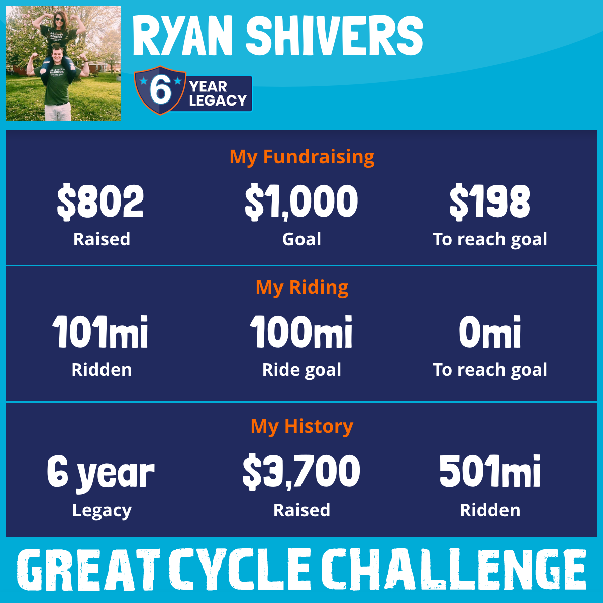 Every year I ride for Grant Crisp and every child who is going through or has gone through the fight with cancer. Though Grant’s fight has ended, during his fight he was able to show us all that in the hardest of times; determination, faith, and hope will give you strength. These are the beliefs I will carry with me as I ride 100 miles this month in his honor.