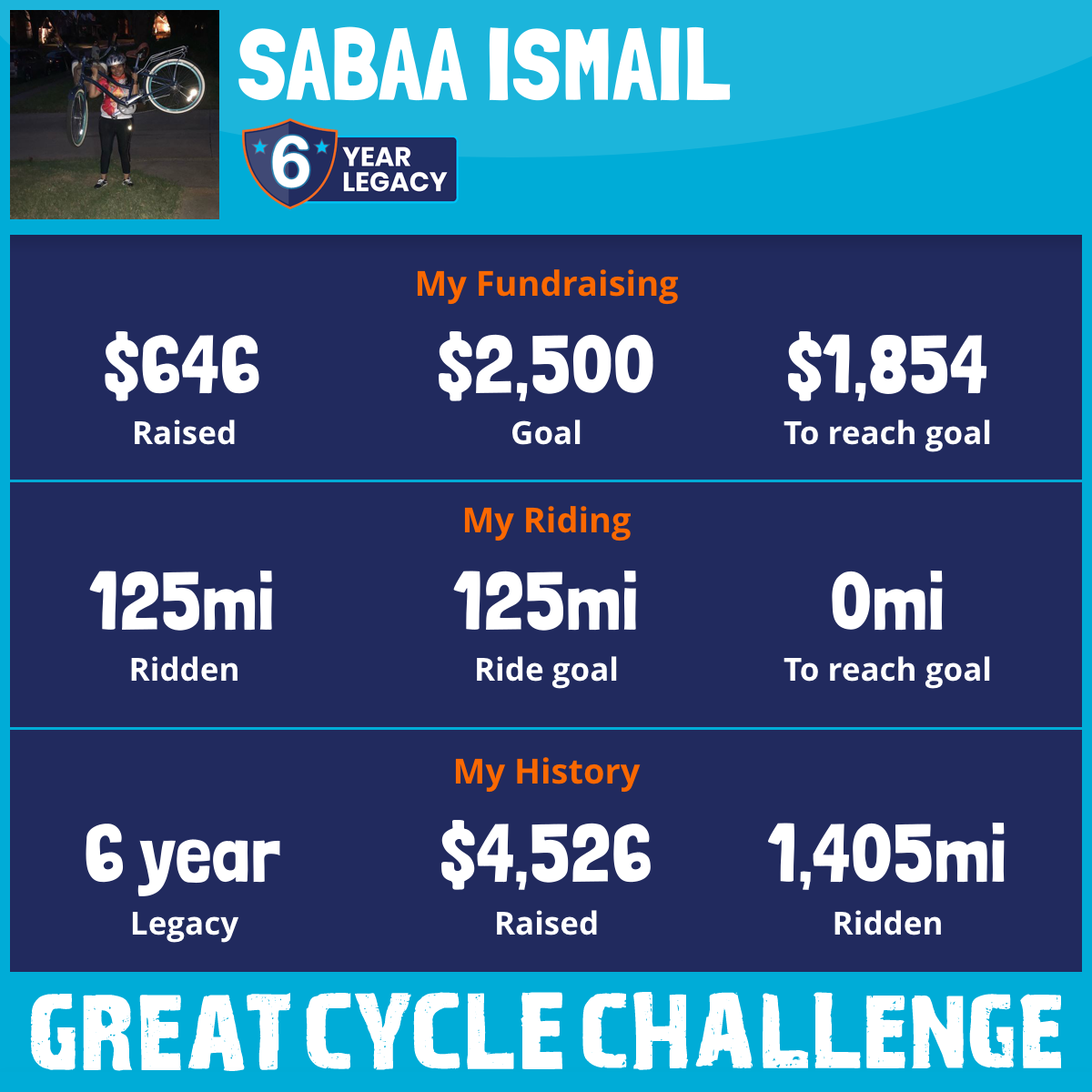 I've signed up for the 2025 Great Cycle Challenge and will be riding this September to fight cancer! My goal is to pedal 125 miles throughout the month.