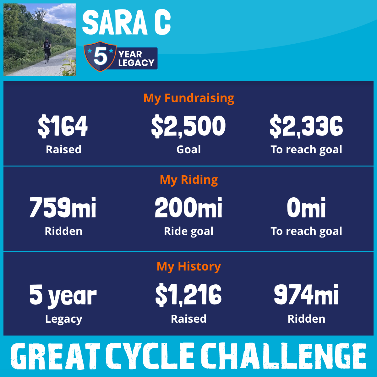 I am riding 200 mi in memory of My Mamaw Augusta ❤. Please sponsor me and support my challenge to fight kids' cancer and save little lives.