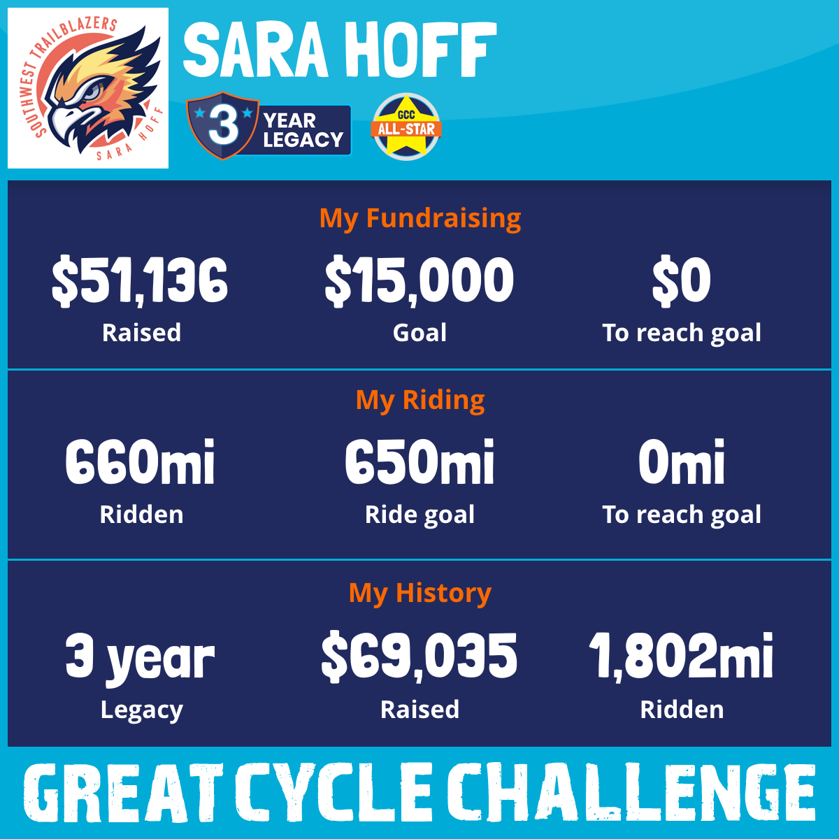 660 mi Ridden$51,136 Raised2025