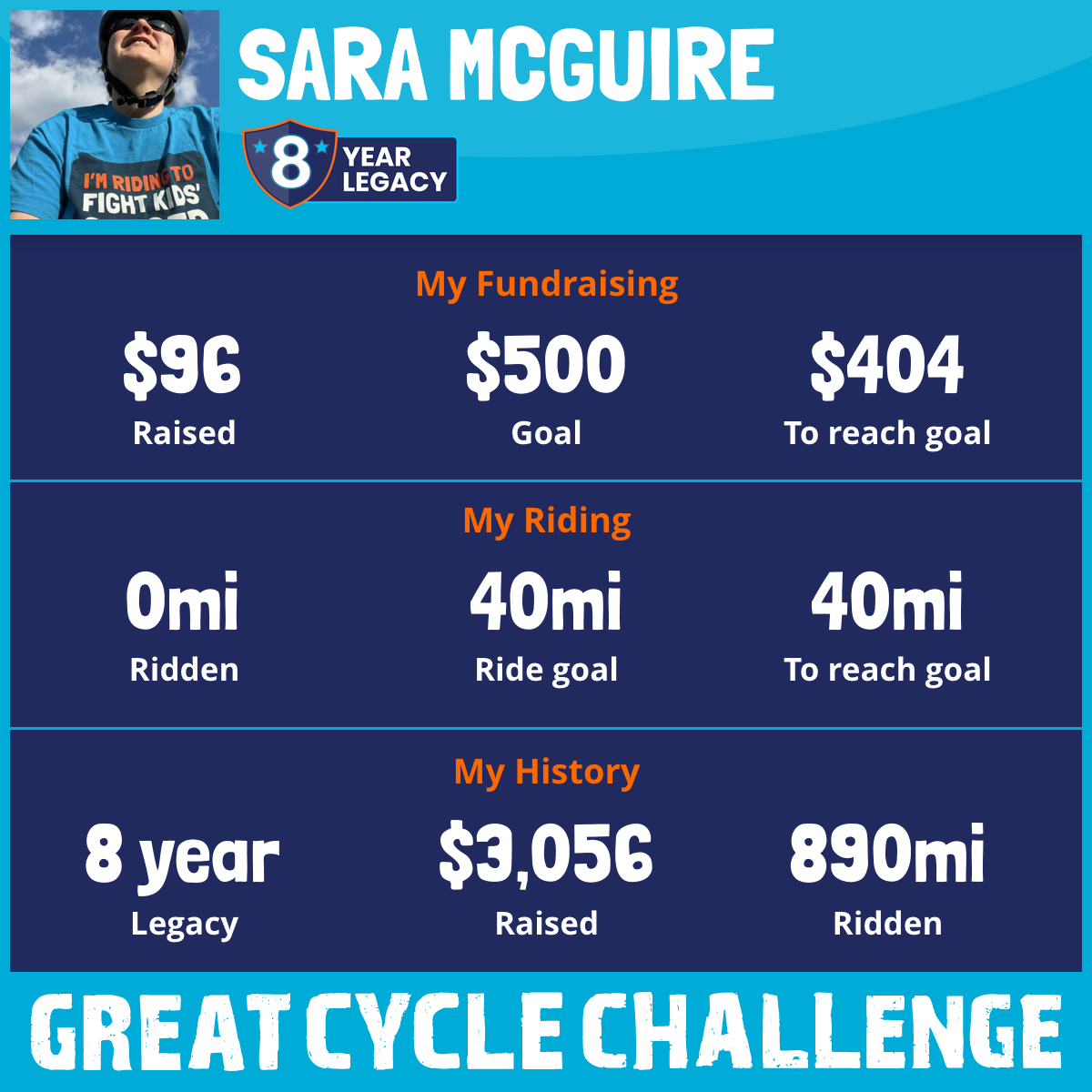I am riding 40 mi in memory of Casey Craig, Eli Robins, & Izzy Caudill. Please sponsor me and support my challenge to fight kids' cancer and save little lives.