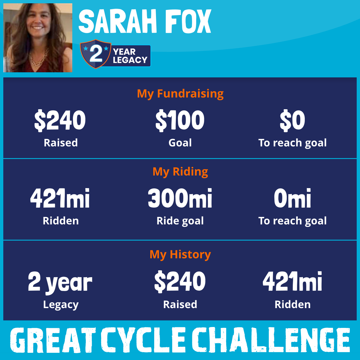 421 mi Ridden$240 Raised2025