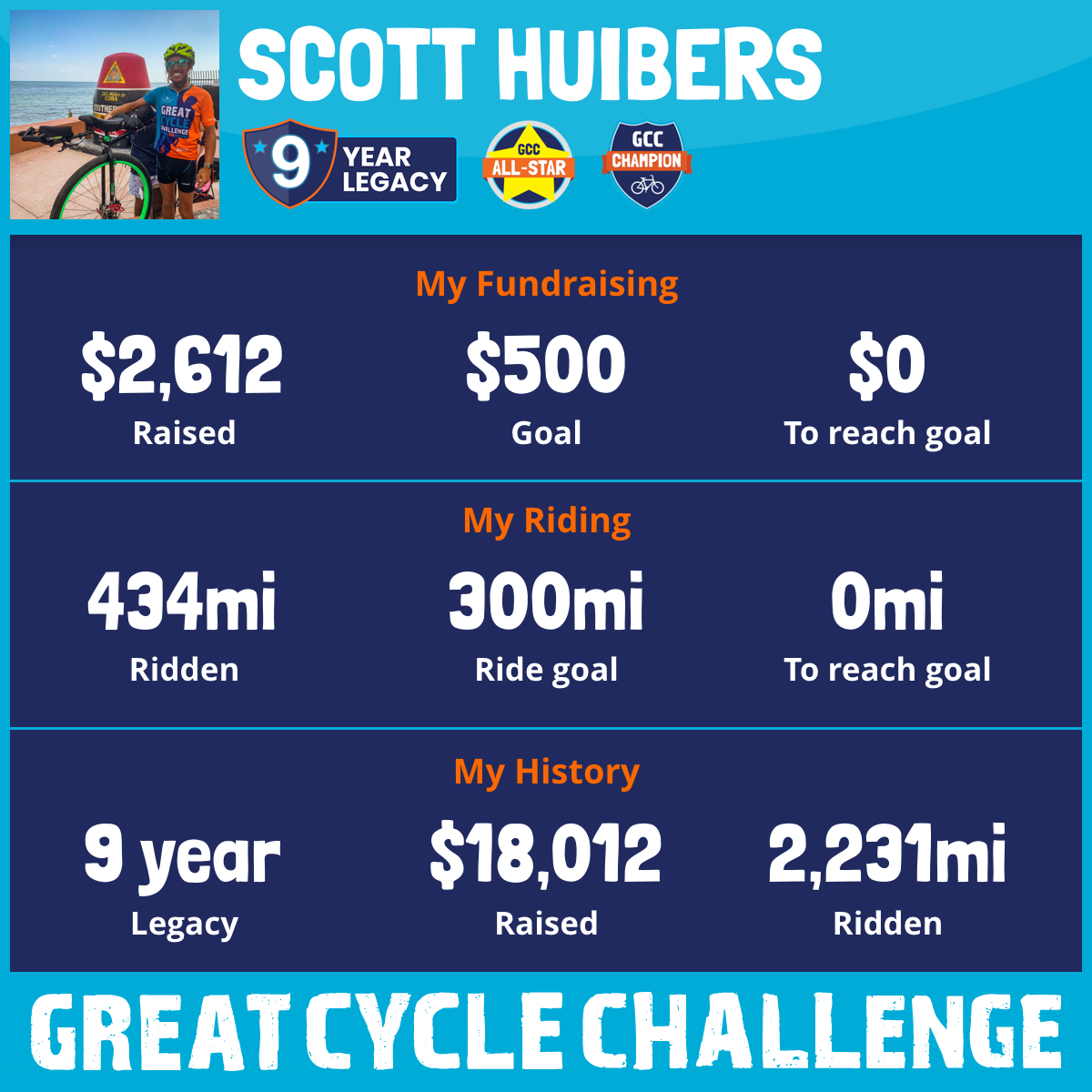 I’ve been part of the Great Cycle Challenge for 9 years now, raising money for children’s cancer research. So far, I’ve unicycled more than 1,700 miles and raised over $15,000 to help kids get the care they need.