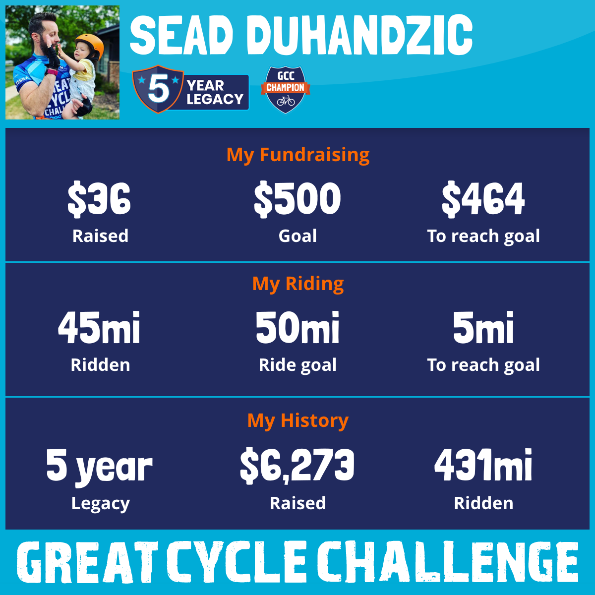 I am riding 50 mi to fight kids' cancer and save little lives. Please sponsor me to support my challenge!