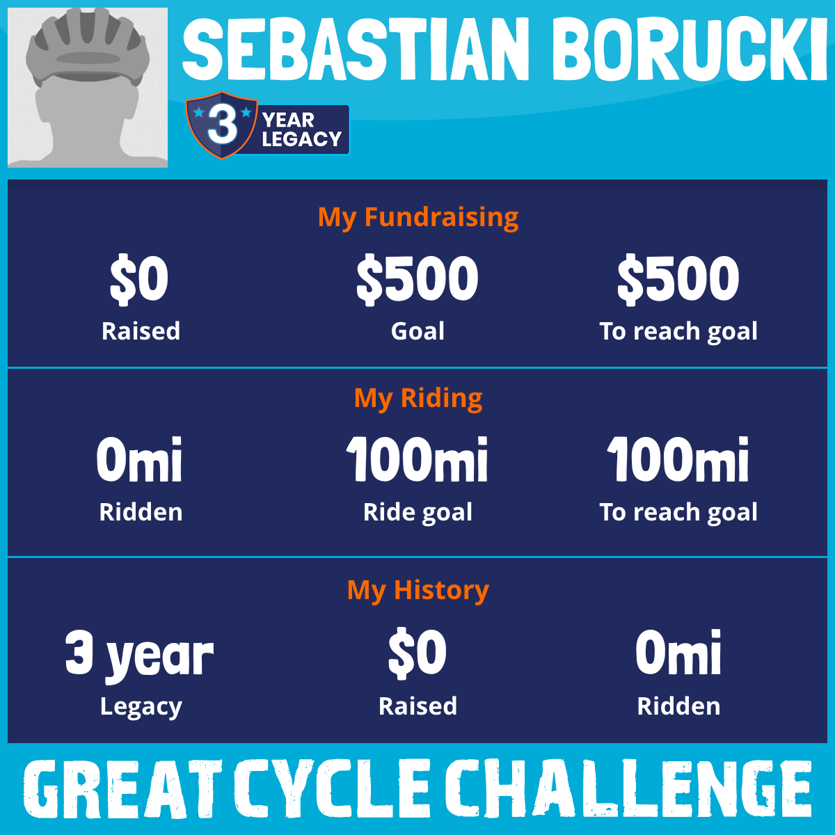 I've raised $0 My goal is $500 Donate Now
