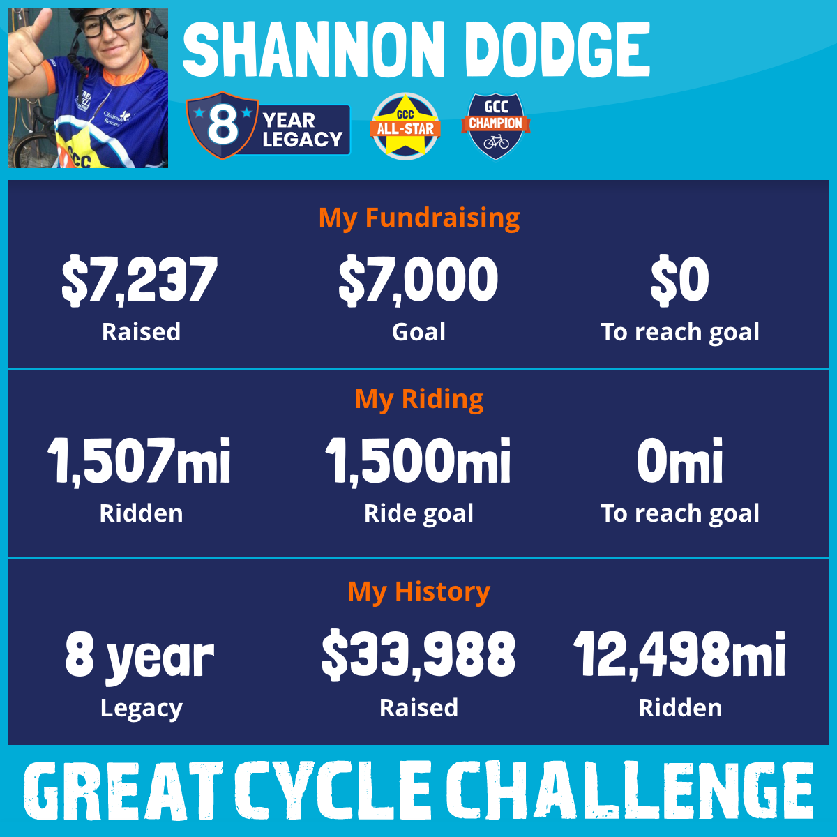 1,507 mi Ridden$7,237 Raised2025
