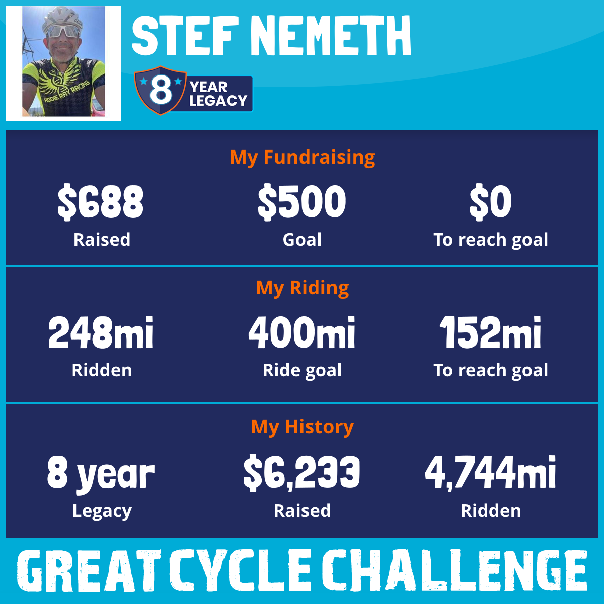 I am riding 400 mi to fight kids' cancer and save little lives. Please sponsor me to support my challenge!