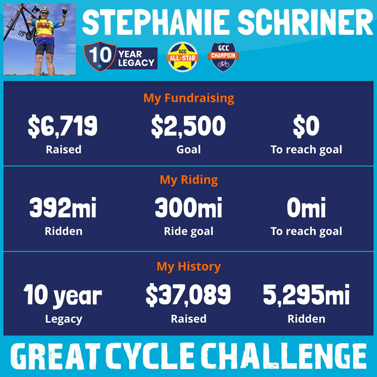 In past years I would adopt a new person to honor during my year long journey. But after losing my dear brother-in-law Bobby Schriner to Leukemia 5-2-23, I decided that he is my ultimate hero. He was so courageous and strong during his battle, that is my true honor to ride for him! We miss you Bobby and you will always be my HERO!!!!