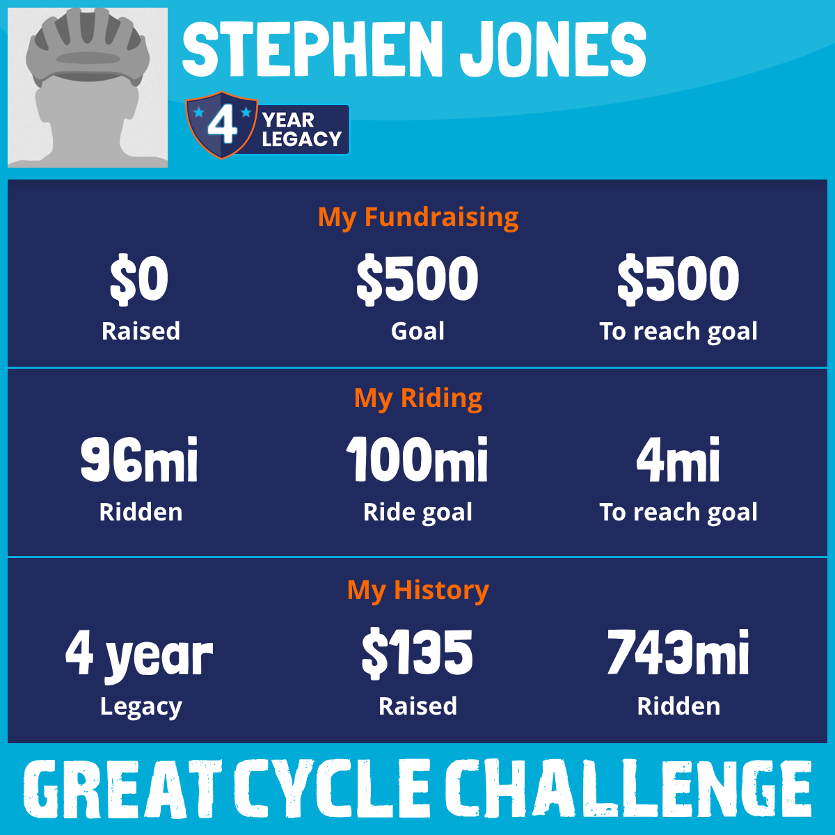 I am riding 100 mi for My Wife Heather. Please sponsor me and support my challenge to fight kids' cancer and save little lives.