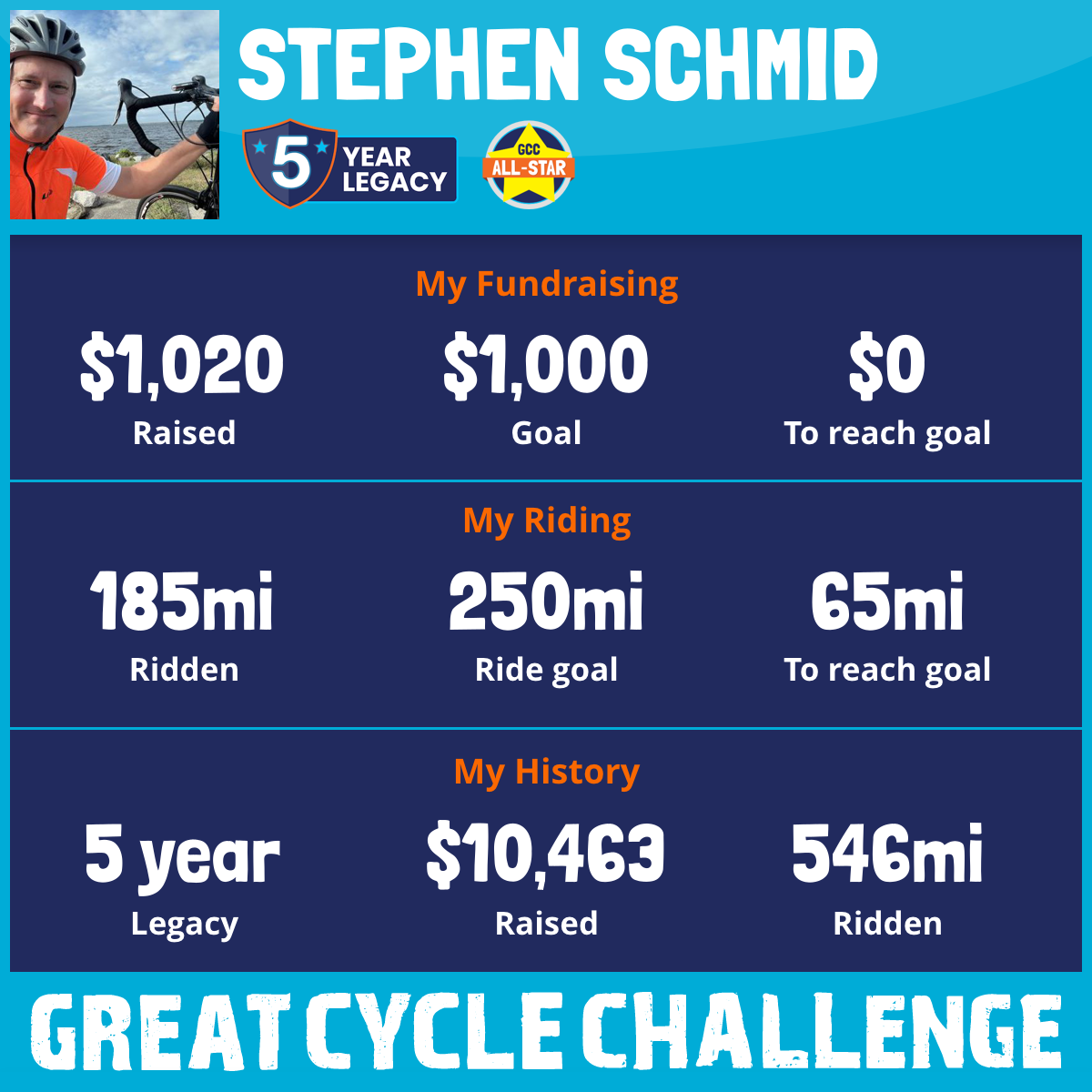 415 mi Ridden$1,056 Raised2025