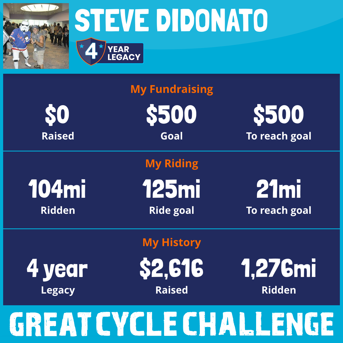 I am riding 125 mi to fight kids' cancer and save little lives. Please sponsor me to support my challenge!