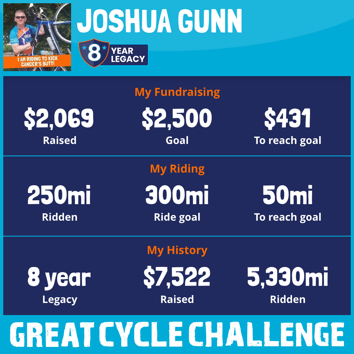 250 mi Ridden$2,069 Raised2025