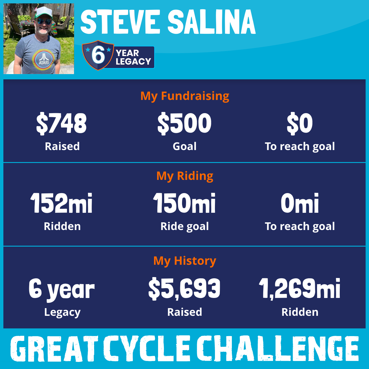Hi all. I've signed up for the 2025 Great Cycle Challenge and will be riding this September to fight kids' cancer! This is my sixth year doing this, and it's such a worthy cause! My goal is to pedal 150 miles throughout the month. Why am I doing this? Because cancer is the largest killer of children from disease in the United States - 38 children die of cancer every week. My challenge will be tough, but it's nothing compared to what these brave kids and their families face every day of their lives as they battle this terrible disease. Kids should be living life, NOT fighting for it. And so I am taking on this challenge to end childhood cancer and save little lives. Please support me by making a donation. All funds raised will support Children's Cancer Research Fund to continue their work to develop innovative treatments and find a cure for childhood cancer. Any donation, no matter how big or small, is greatly appreciated!!