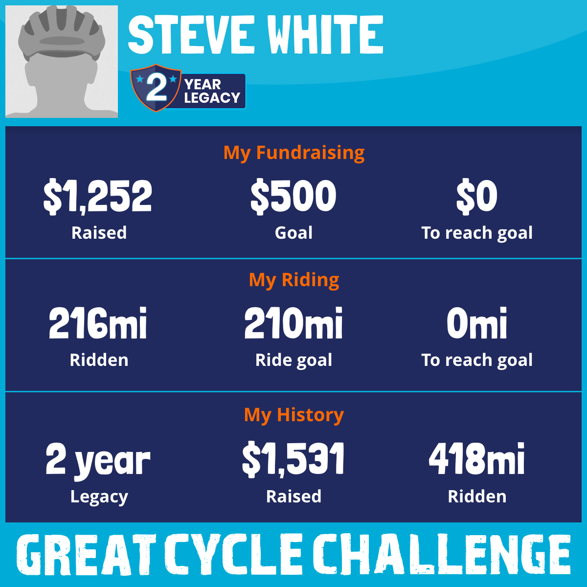I am riding 210 mi for Sharon. Please sponsor me and support my challenge to fight kids' cancer and save little lives.