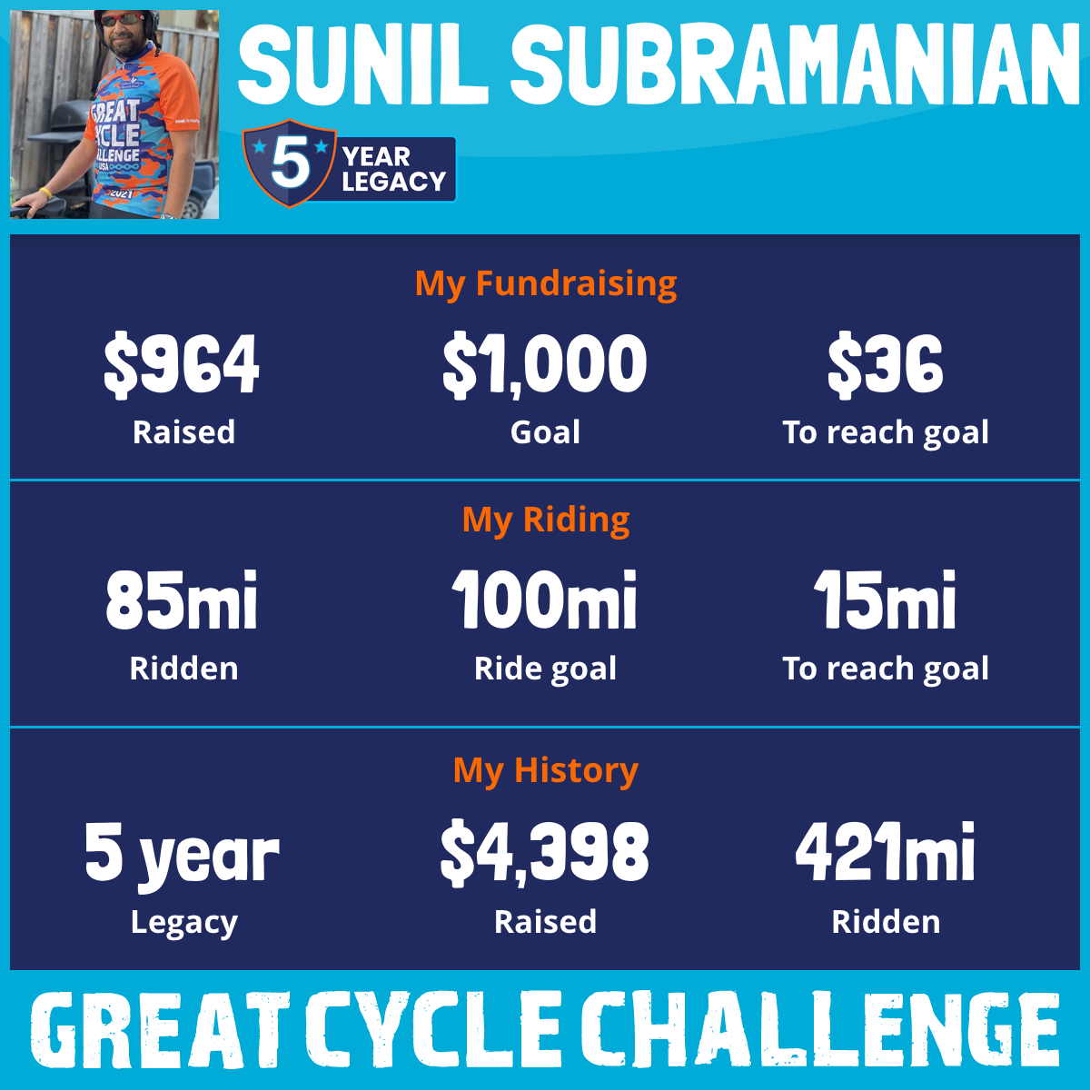 85 mi Ridden$964 Raised2025
