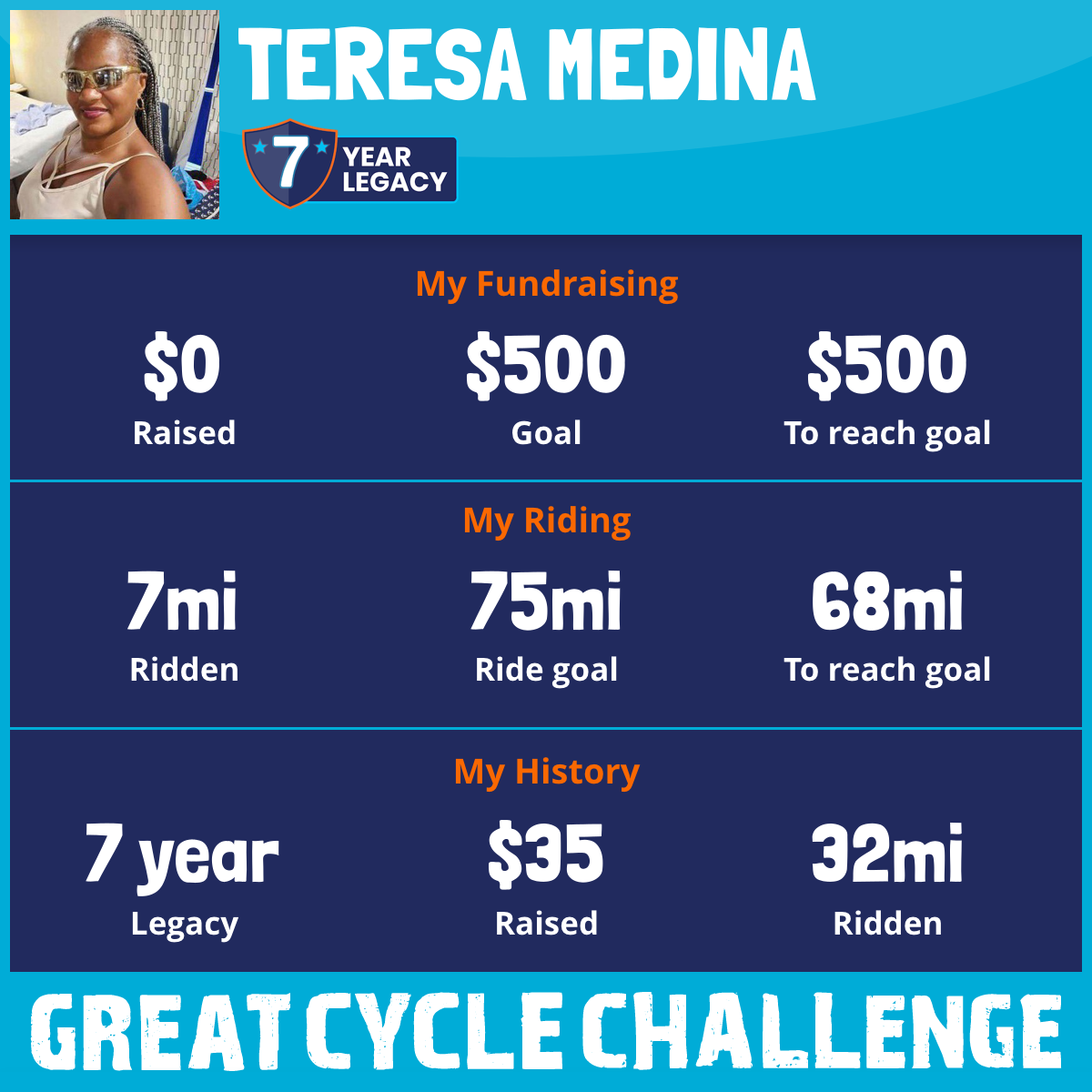 We miss a few lady's in our family that have pass in the last few years,and this ride I'm doing is for them lady's and all people and child to help stop this disease. From our hold family thank you.