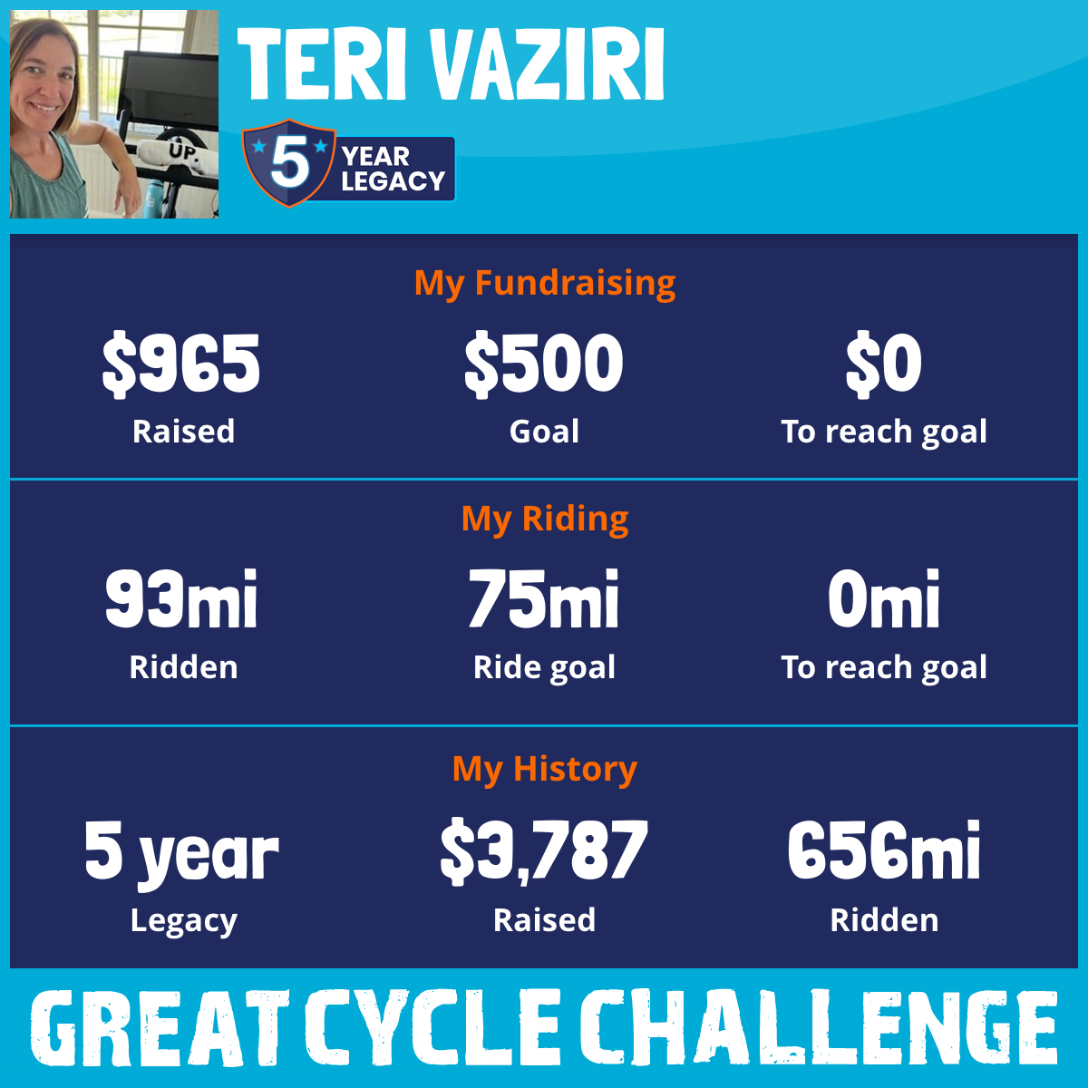 It's Cancer Awareness month and for the 5th year, I'm taking part in the Great Cycle Challenge to fight kids' cancer! I'm riding 75 miles in September and hope to raise $500.