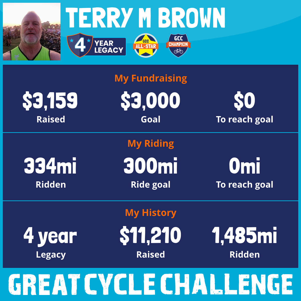334 mi Ridden$3,159 Raised2025