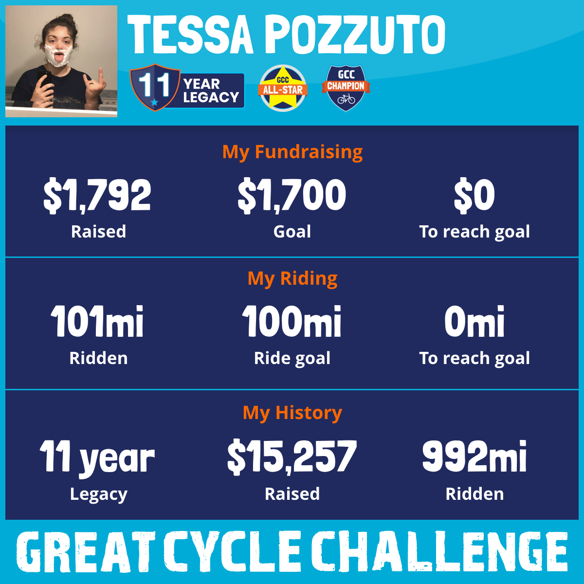 100 mi Ridden$1,038 Raised2017