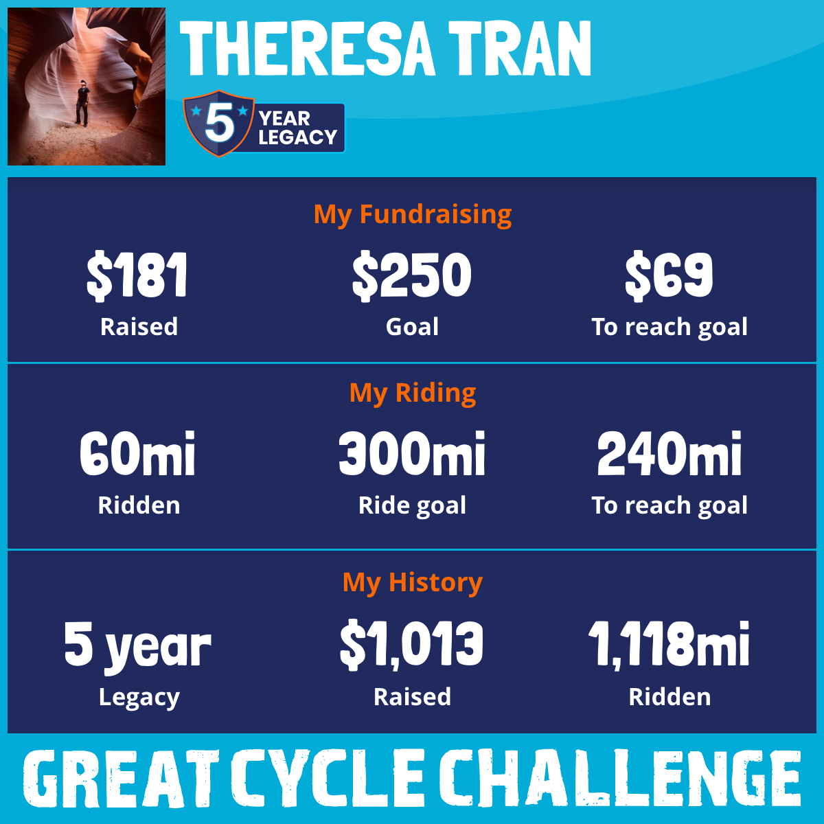60 mi Ridden$181 Raised2025