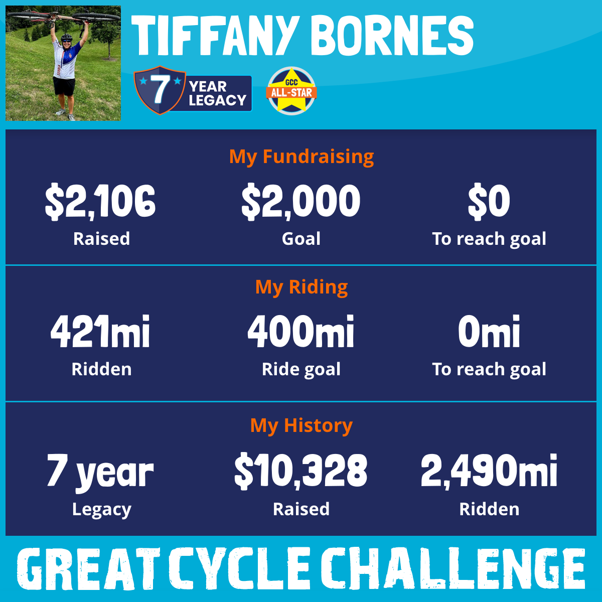 421 mi Ridden$2,106 Raised2025